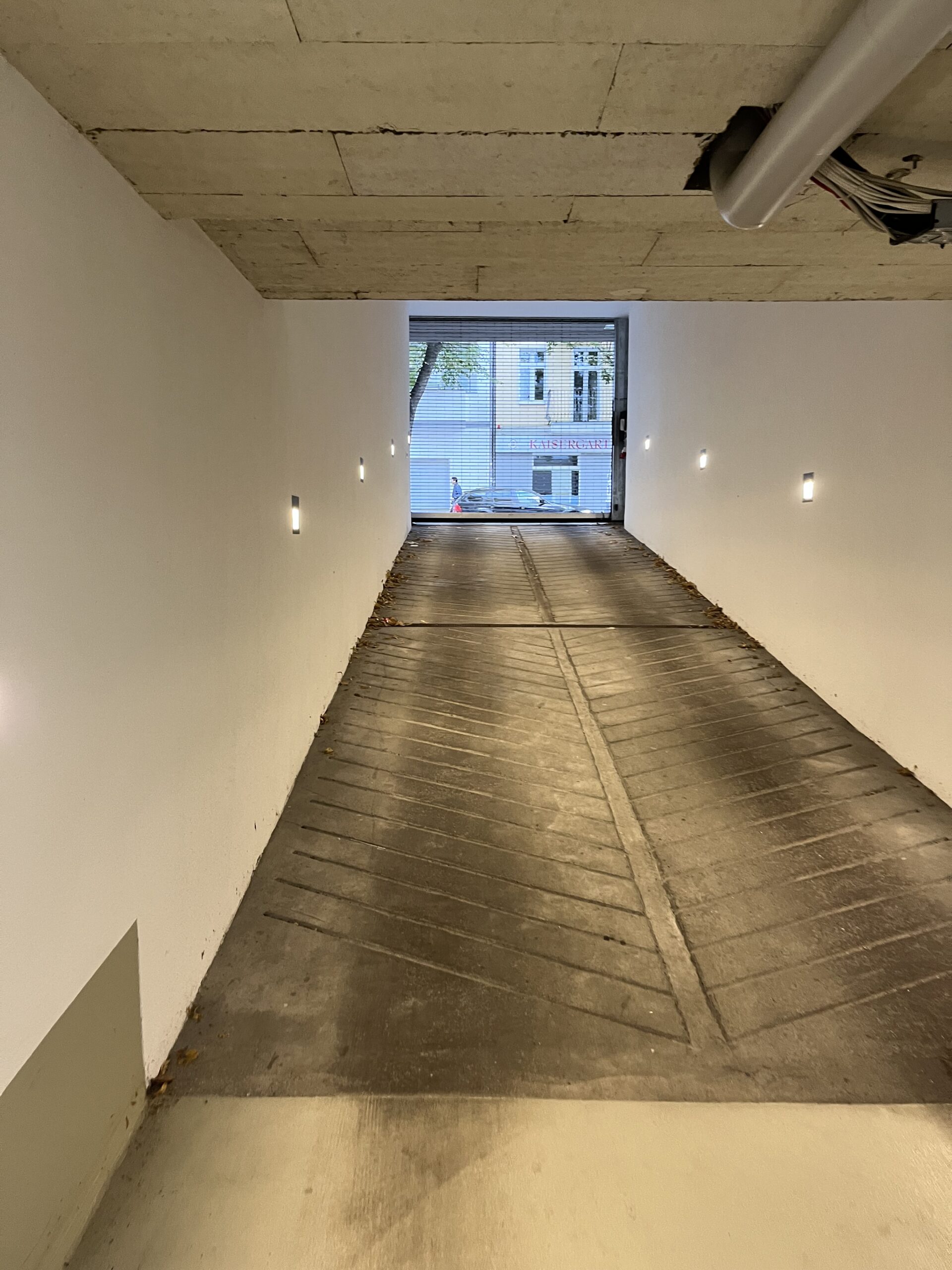 Der Stellplatz befindet sich in einer gepflegten und hell beleuchteten Tiefgarage zwischen dem Bahnhof Schöneweide und der Spree.