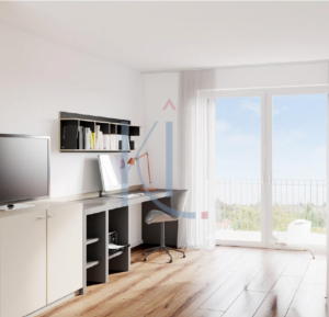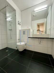Diese Ein-Zimmer-Wohnung überzeugt durch ihr helles, lichtdurchflutetes Zimmer mit Fußbodenheizung und glatt gespachtelten Wänden. Sie ist vollständig möbliert und verfügt über eine Wohn-/Schlafcouch, einen Schreibtisch mit passendem Stuhl sowie praktische Einbauschränke.