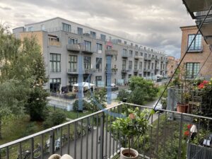 - einladender Balkon mit Blick ins Ensemble