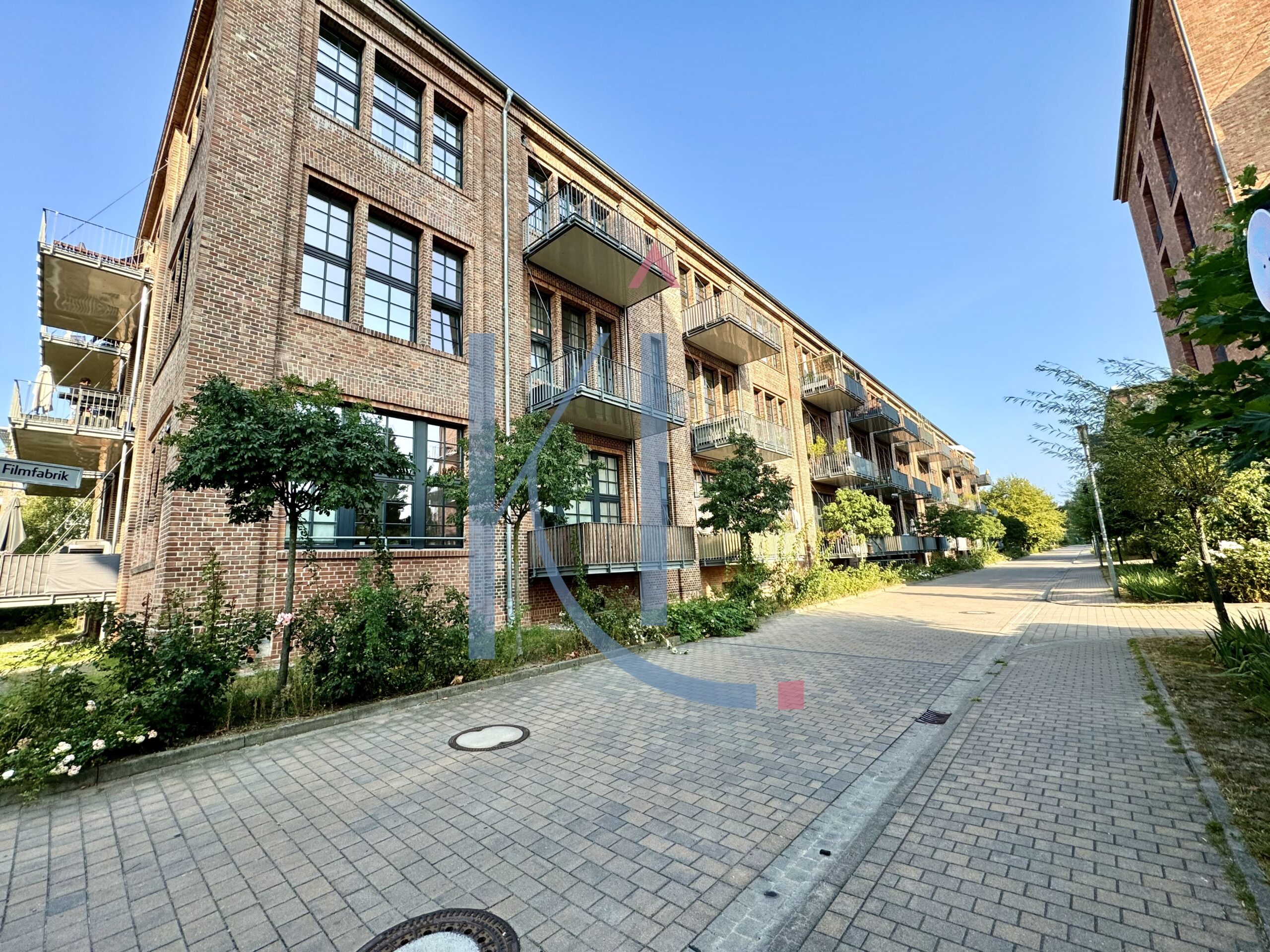 Hier verbinden sich die imposante Architektur der ehemaligen Kodak-Glanzfilmfabrik mit modernem Wohnkomfort und einer Lage, die kaum idyllischer sein könnte. Die denkmalgeschützten Backsteinbauten der früheren Glanzfilmfabrik wurden aufwendig saniert und zu einem Wohnensemble mit einzigartiger Atmosphäre entwickelt. Das Herzstück bildet die lichtdurchflutete Innen-Galerie, die mit ihrer gläsernen Architektur an eine Orangerie erinnert und dem Haus einen offenen, eleganten Charakter verleiht.